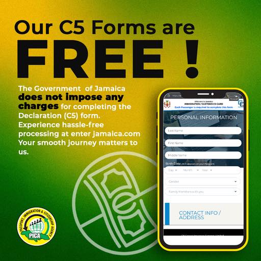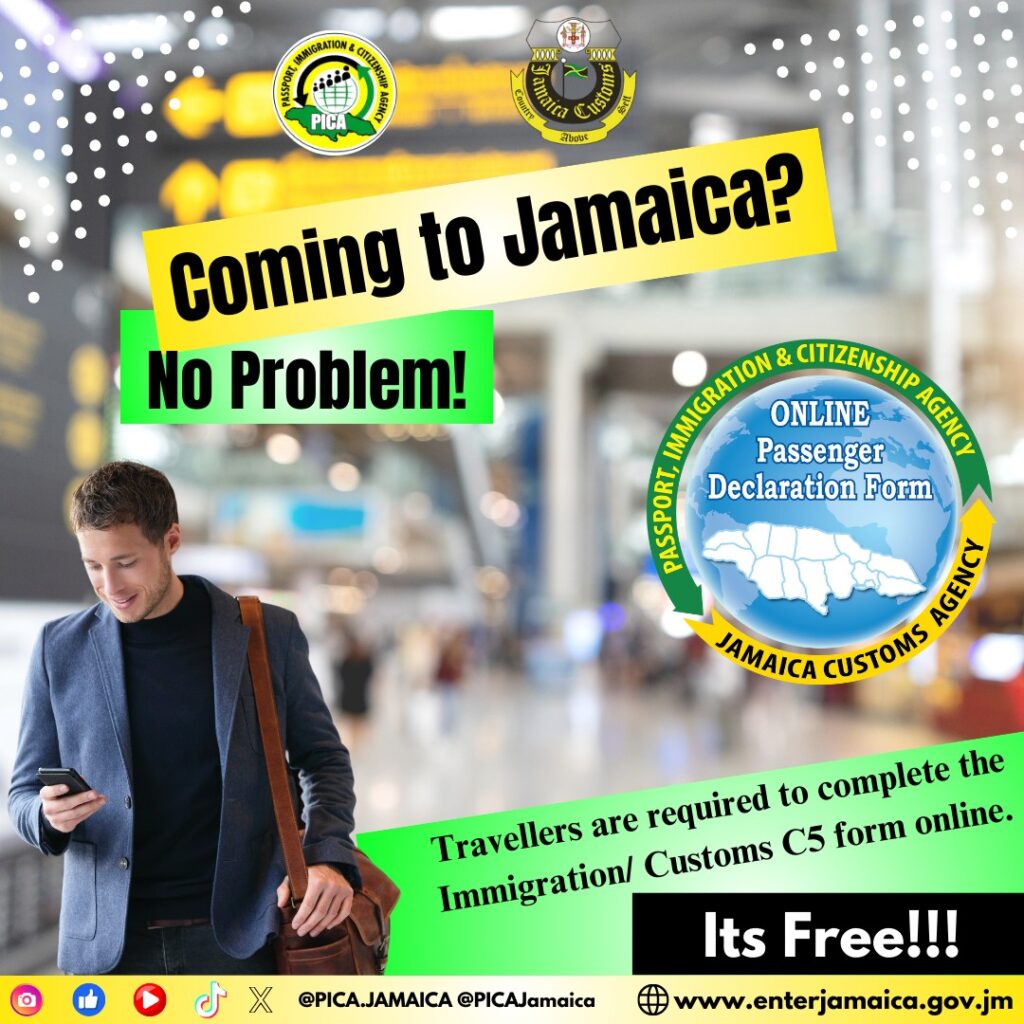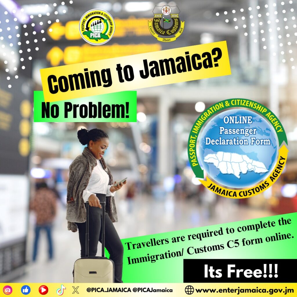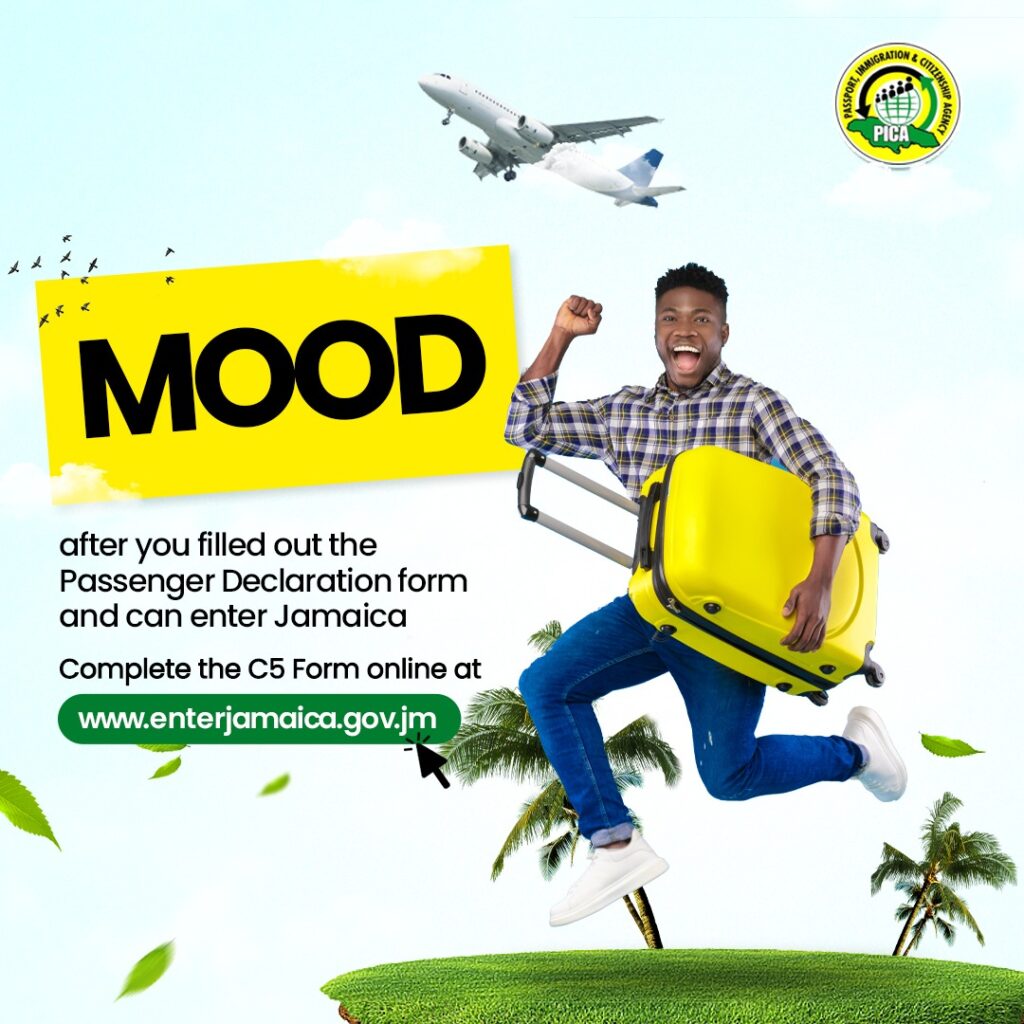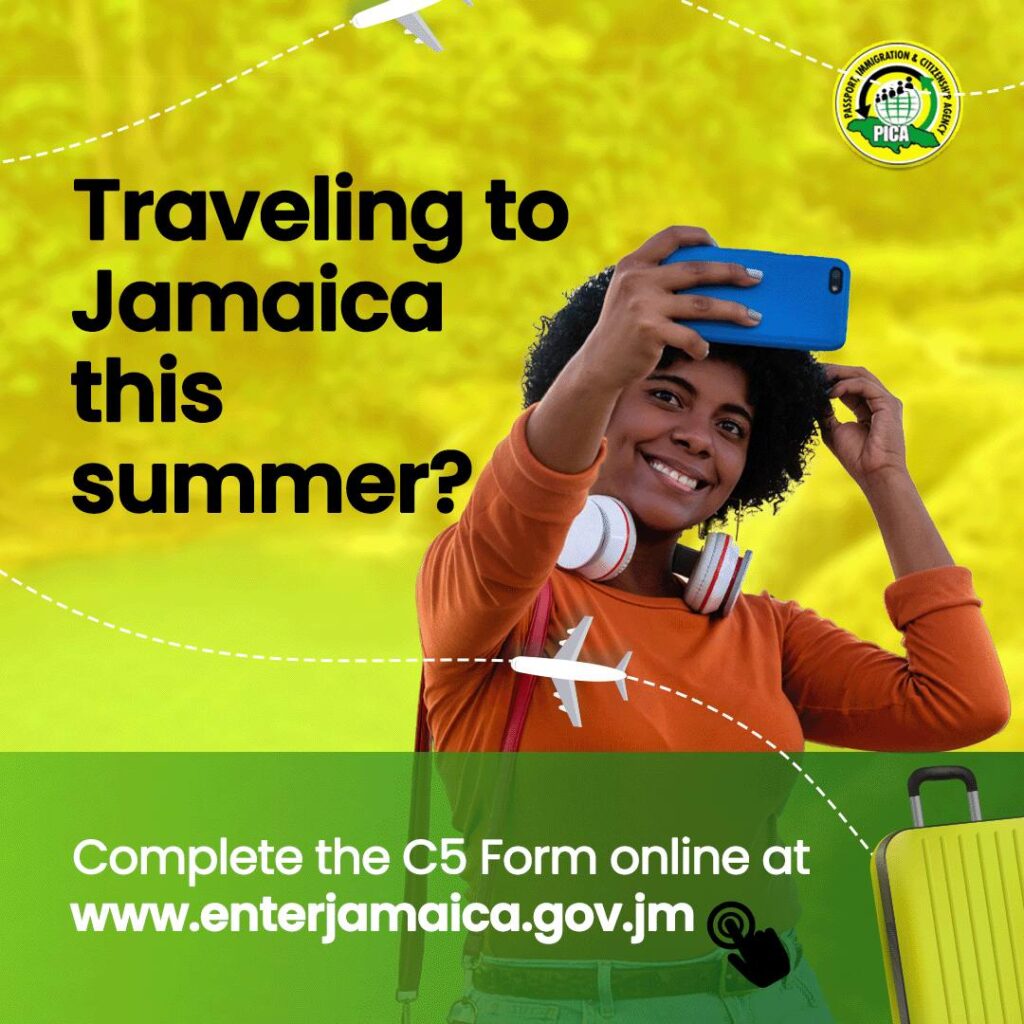• Immigration Form C5: Every traveller must fill out an Immigration and Customs Form. This can now be done online, saving you time at the airport. Access the form on the Jamaica Immigration and Customs website.