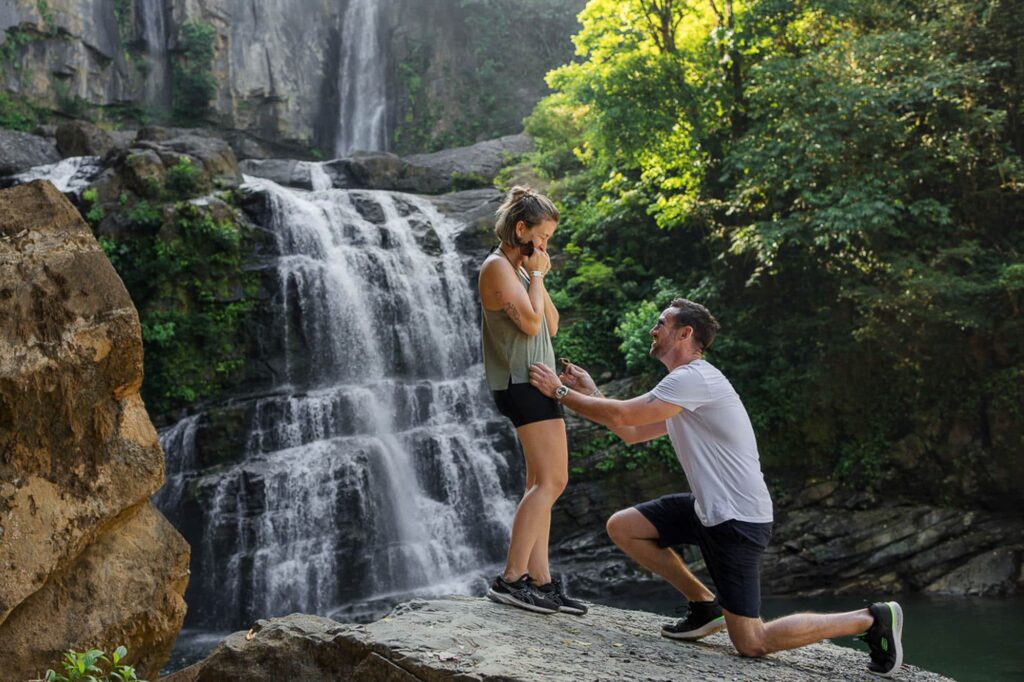 Imagine finishing an exhilarating zip-line ride through the lush rainforest only to find your partner waiting at the landing platform, ring in hand.